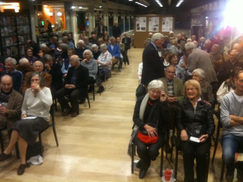 This evening I gave a lecture in the city of Delft (in Dutch “Bouwkunde na de brand – project en ontwerp: made in Delft”) for many Delft inhabitants, including (retired) TU Delft professors and former mayors of Delft: see http://www.delft.nl (“Bouwkunde na de brand”) en http://www.dok.info. The venue was the Delft library (DOK) – a beautiful building and another good example of a learning landscape. The event was sold out. I just uploaded my presentation as a hand-out (to be retrieved from DOWNLOADS). The photo below was taken after the coffee break, just before a started with part II of my lecture (the spotlight was already on me again…).