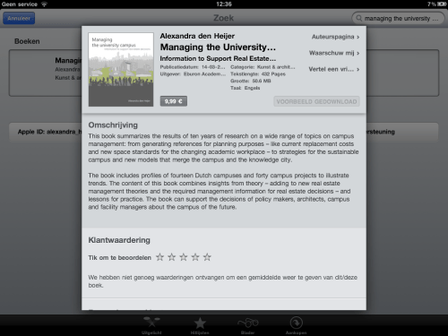 Last week I got a ‘go’ for the second edition of the book after about 700 copies of the first edition were distributed worldwide. The second edition (December 2011) can be considered a reprint, even though I corrected small things (not effecting the content) that were already changed in the eBook since it was released in March 2011. The physical book (2nd edition) is now available for pre-order by clicking on the book cover on the right, which will link to the publisher’s website. A free preview (or the complete eBook) can be retrieved from the iBookstore (see photo below).