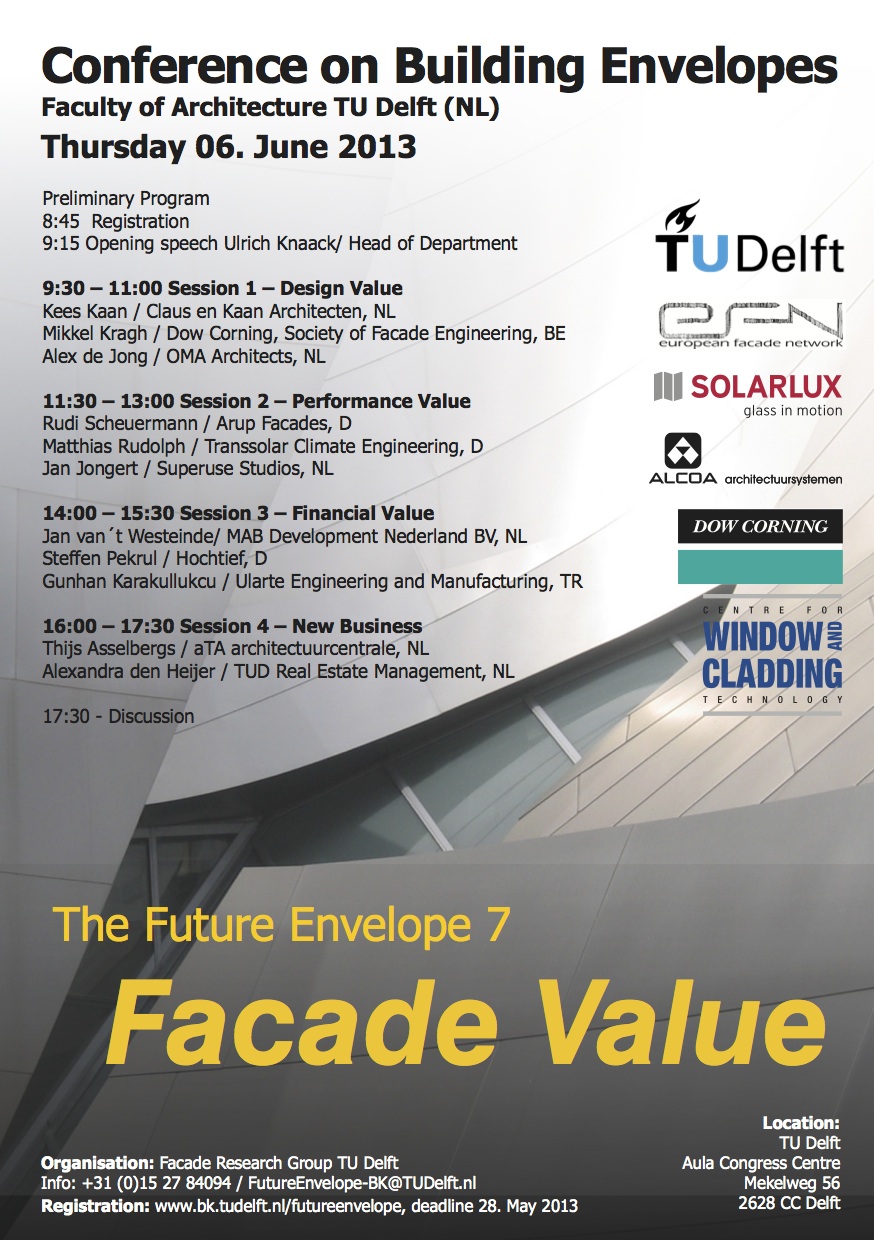 On June 6, 2013 I was a speaker at a conference about the Future Envelope – the theme this year was Facade Value. My presentation can be found under DOWNLOADS.